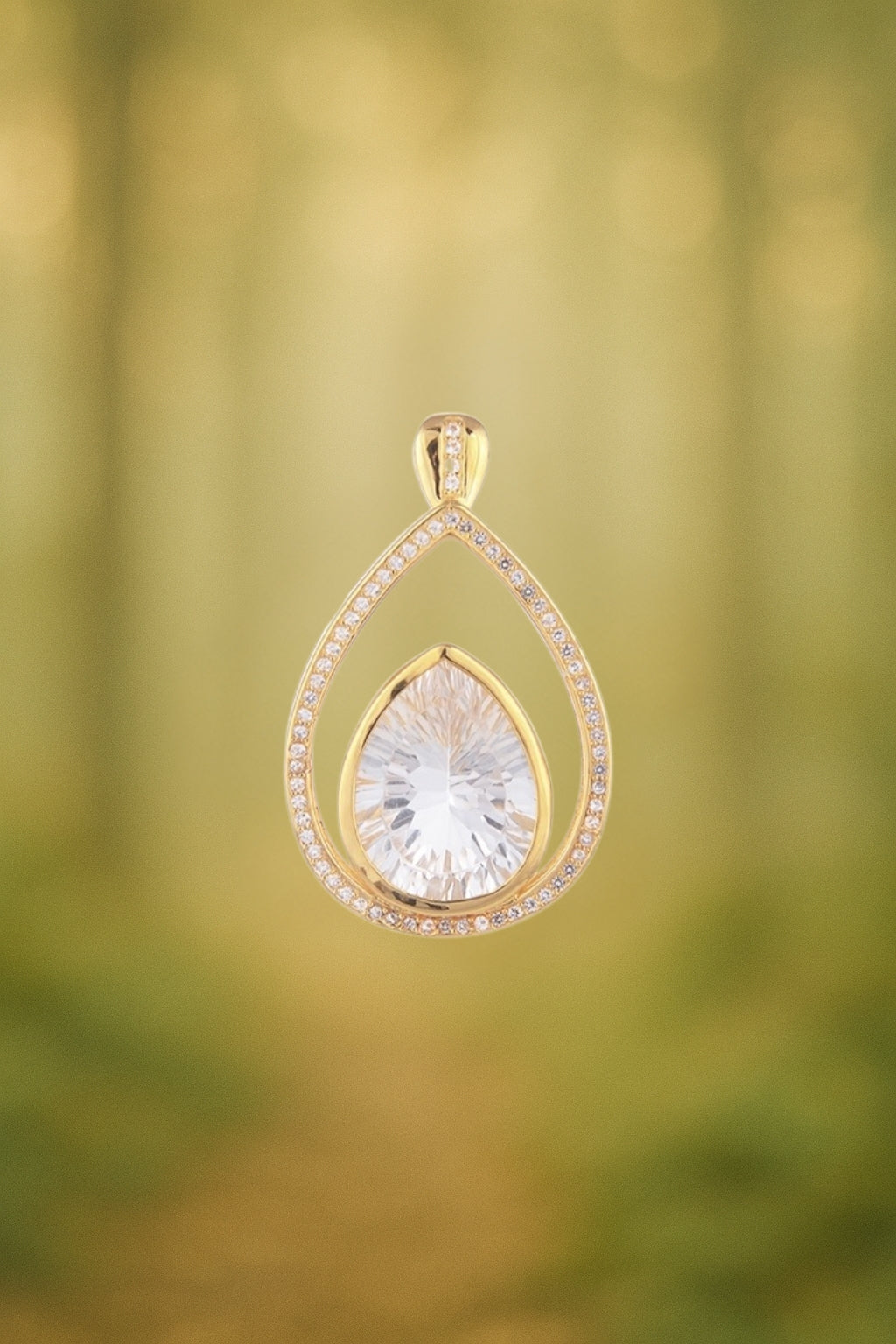 Eleganter Bergkristall-Anhänger mit auffälligem facettierten Edelstein in Tropfenform!