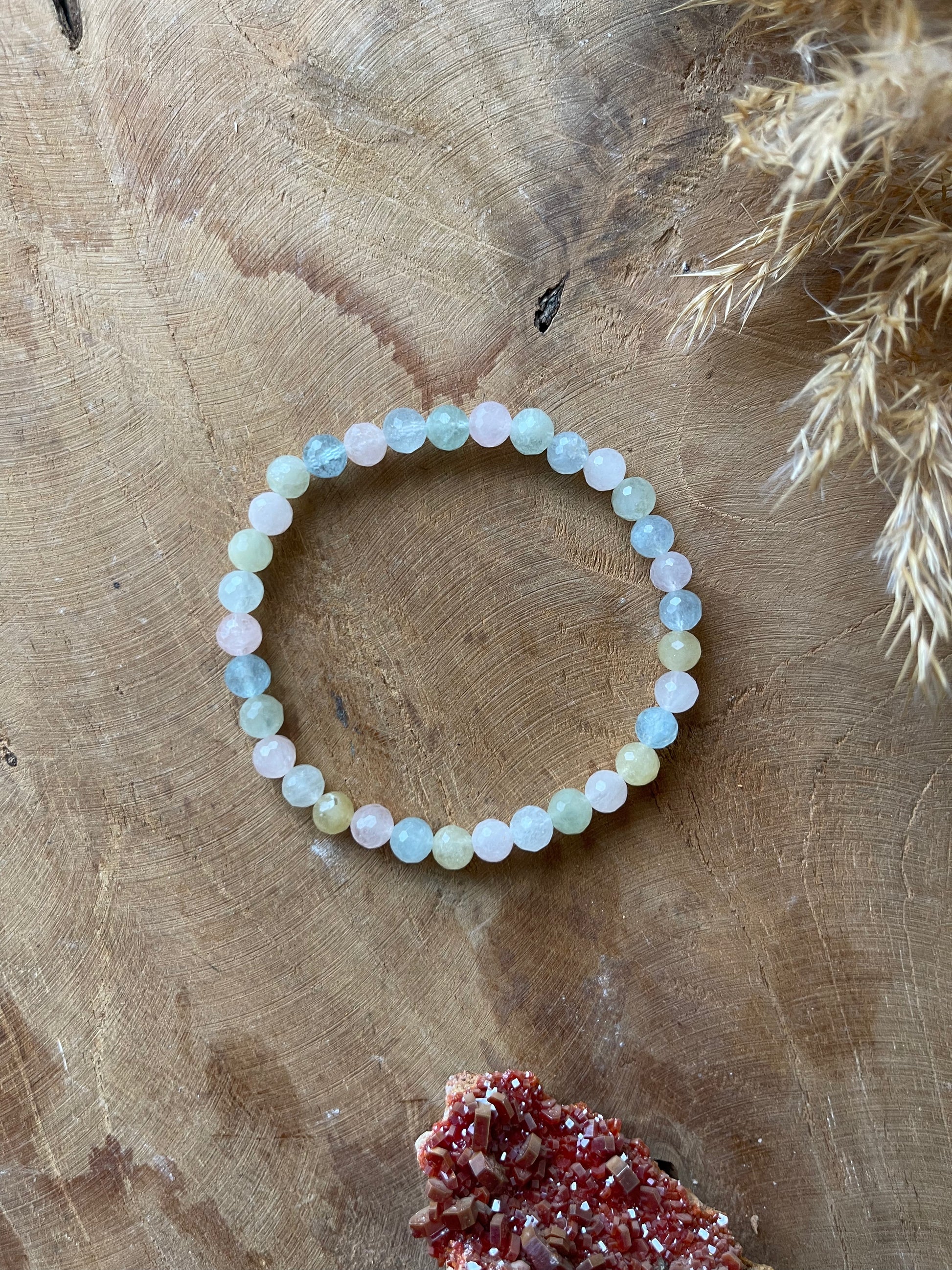 Durch das Gummiband passt das Beryll Armband an fast jedes Handgelenk! Es ist flexibel.