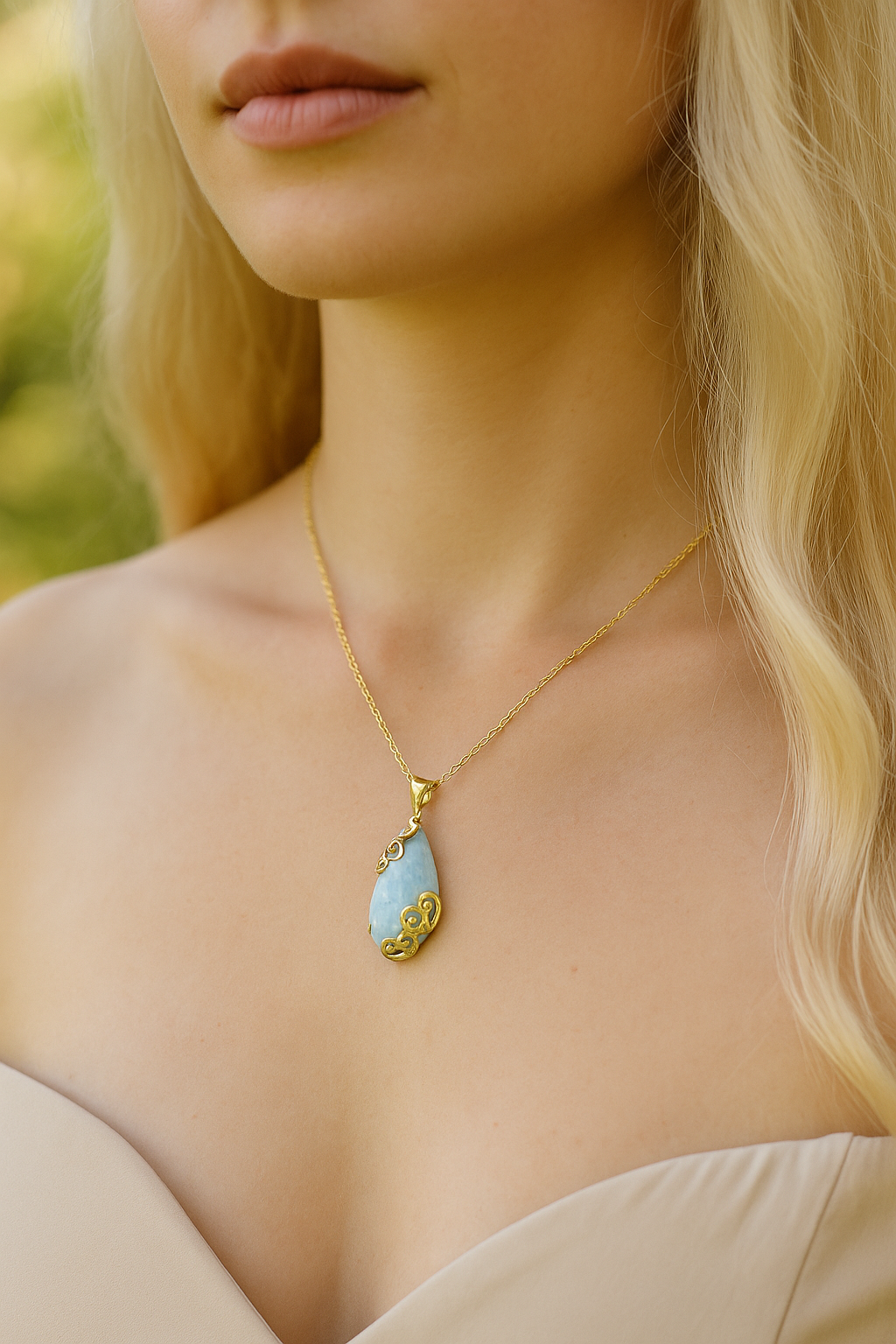 Elegant-verspielter Anhänger mit einem Tropfen aus Larimar!