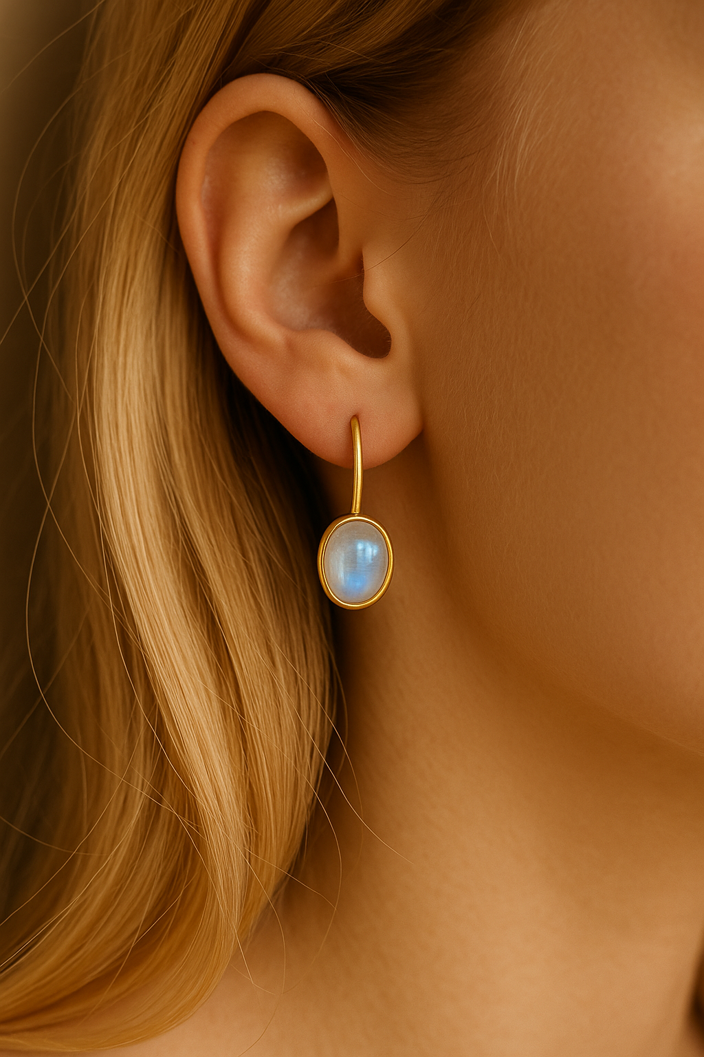 Regenbogen-Mondstein Ohrhänger (925 Silber, vergoldet)
