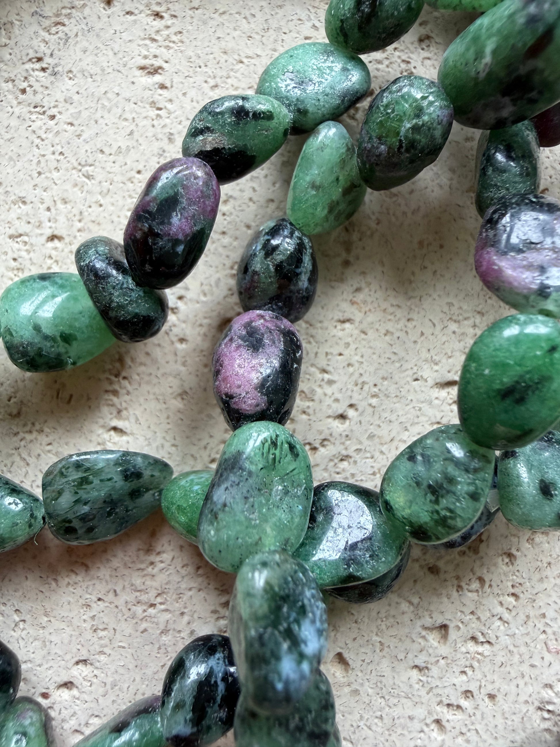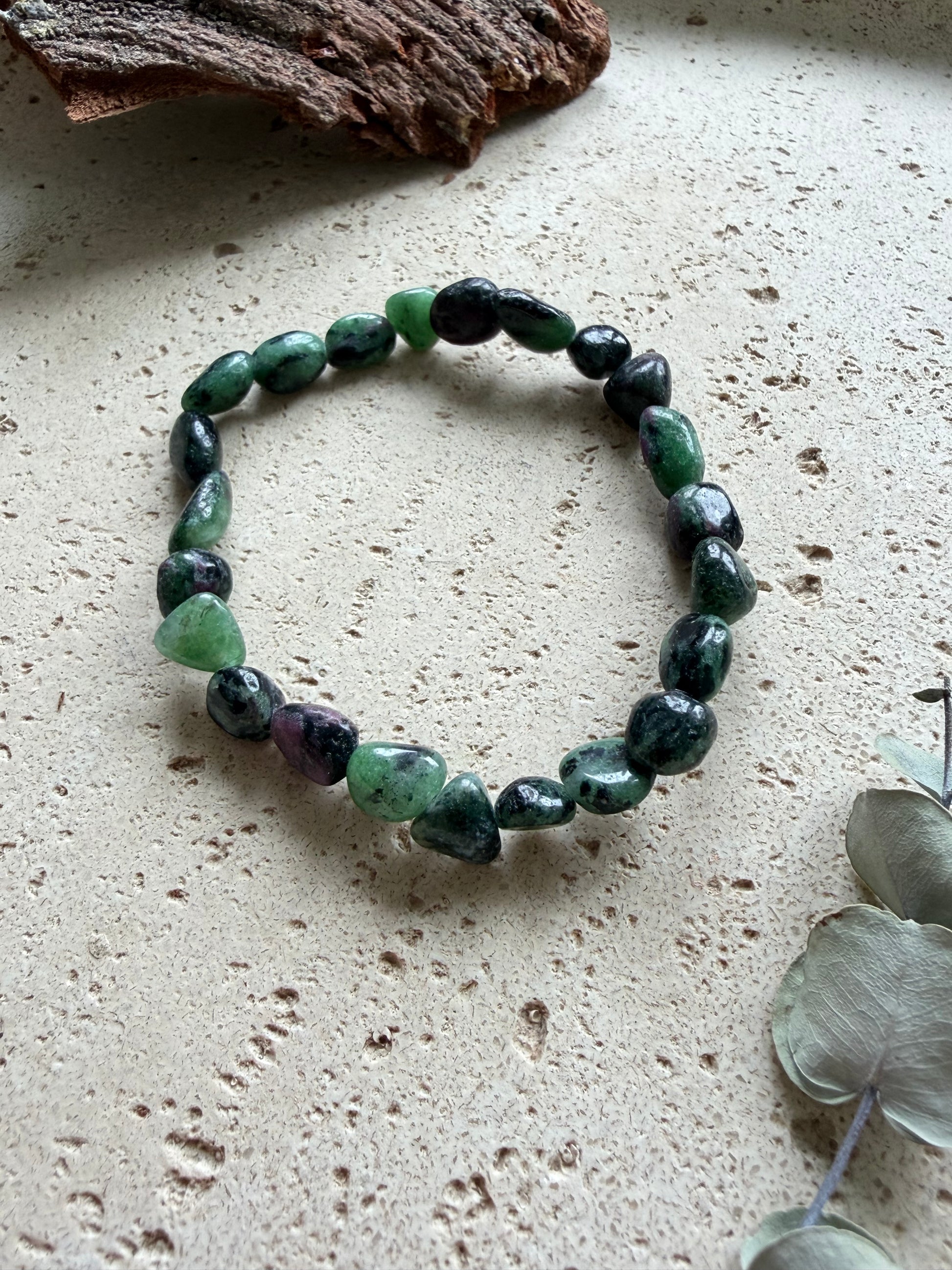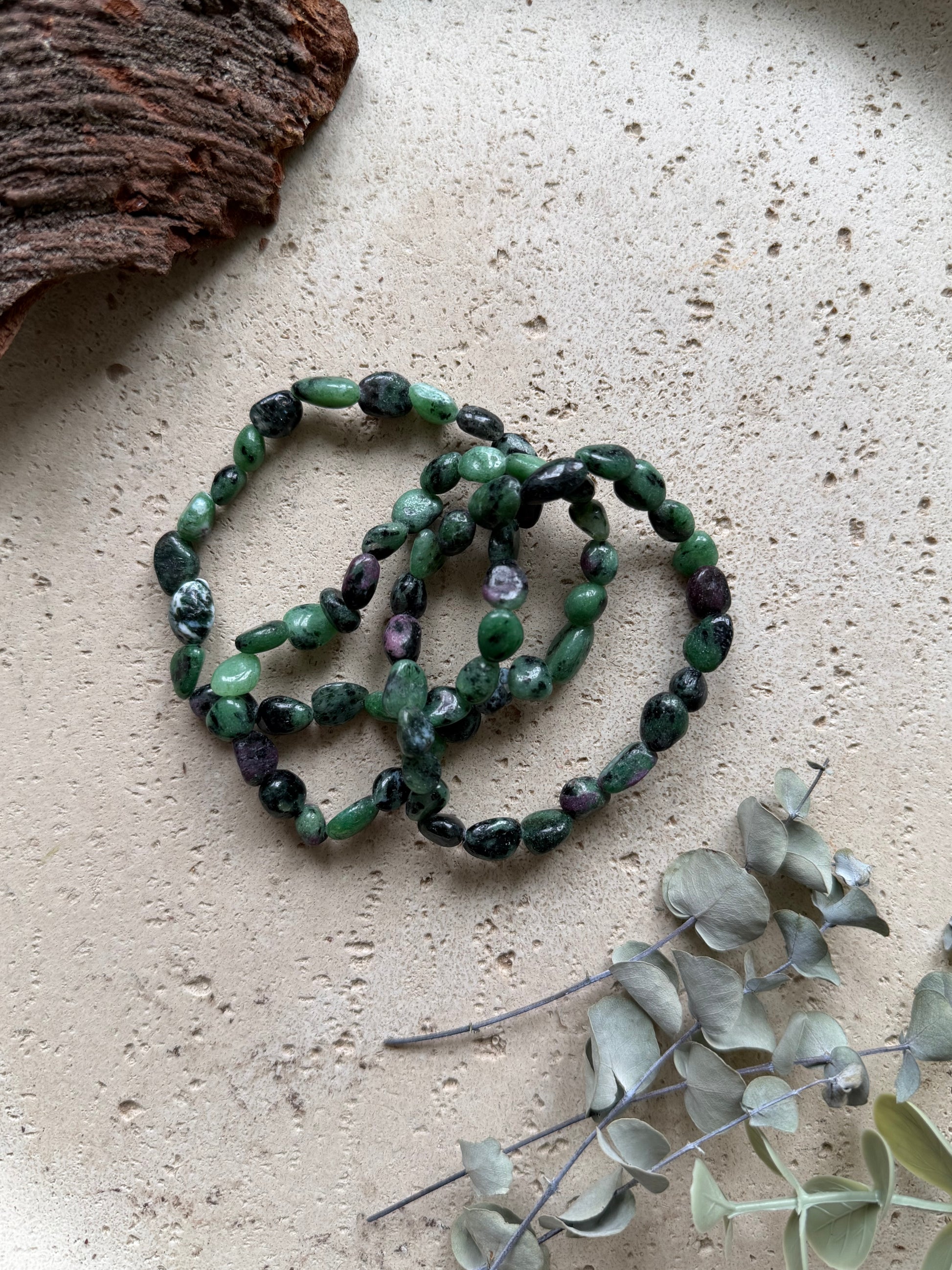 Rubin-Zoisit Nuggetarmband – Naturstein auf Elastikband